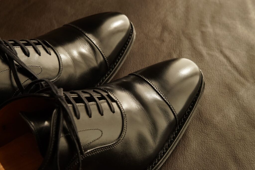 黒いビジネスシューズを全体的に鏡面磨き